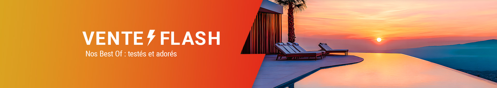 Transformez votre séjour en une expérience unique grâce à nos offres flash exclusives. Envie de découvrir nos best of ? Trouvez les vacances qui vous ressemblent avec notre offre vente flash et découvrez nos meilleurs offres testées et adorées ! . Faites vite ! L'offre est limitée.